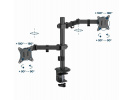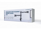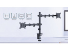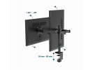 Držák monitoru na stůl s dvojitým ramenem Ramena umožňují otáčení, vysouvání, zasouvání nebo naklápění displeje a umožňují otáčení monitorů z režimu na šířku do režimu na výšku atd. Funguje s téměř jakýmkoli LCD monitorem (max. 32") Samostatná ramena umožňují zarovnanou montáž monitorů různých velikostí/značek Pevná stolní svorka nebo průchodka pro snadné a bezpečné upevnění na stole Vestavěná správa kabelů pro organizovaný a úhledný pracovní prostor Kompatibilní s VESA (100 x 100 mm a 75 x 75 mm) Specifikace Materiál ocel, plast Povrchová úprava: práškový lak Barva: černá Podporovaná velikost obrazovky: 17" - 32" Nosnost: 9 kg (na displej) Podpora VESA: 75 x 75, 100 x 100 mm Rozsah náklonu: +45 ° ~ -45 ° Rozsah otáčení: +90 ° ~ -90 ° Otočení obrazovky: +180 ° ~ -180 ° Instalace: Stolní svorka nebo průchodka Max. tloušťka stolu: Svorka: 10 ~ 85 mm, Průchodka: 10 ~ 40 mm Vedení kabelů: ano Čistá hmotnost: 3,5 kg