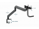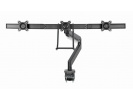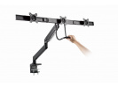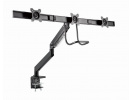 Držák 3 monitorů na stůl s dvojitými rameny Ramena se otáčejí, vysunují a zasunují, naklání a mění úhly a dá se se otáčet displej z krajiny-to-portrét režimu atd Umožňuje snadno ergonomické polohy pro sníženou kmen Pracuje s téměř jakýmkoliv LCD monitoru (max. 27"") Odolná svorka nastavitelná pro plynový je vhodný kg pro snadnou instalaci Silný stůl 1 - pružina Kompatibilní s VESA (100 x 100 mm a 75 x 75 mm) Specifikace Materiál: hliník, ocel, plast Povrchová úprava: práškový lak Barva: matná černá Vhodné pro velikost obrazovky: 17" ~ 27" Nosnost: 1 ~ 6 kg (na displej) Kompatibilní s VESA: 75 x 75, 100 x 100 mm Rozsah náklonu: +5 ° ~ -15 ° Rozsah otáčení: +10 ° ~ -10 ° Otočení obrazovky: +180 ° ~ -180 ° Instalace: Stolní svorka nebo průchodka Max. tloušťka stolu: Svorka: 10 ~ 85 mm, Průchodka: 10 ~ 40 mm Vedení kabelů: Ano Čistá hmotnost: 8,58 kg Rozměry: 1330 x 709 x 770 mm