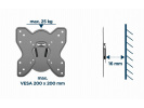 Robustní ocelový nástěnný držák pro LCD/TV Podporuje většinu 23"- 42" LCD televizorů VESA kompatibilní, max. 200 x 200 mm Vzdálenost ke stěně: 16 mm Obsahuje potřebné instalační příslušenství Specifikace Materiál: Ocel Povrchová úprava: práškový lak Barva: černá Vhodné pro velikost obrazovky: 23 " - 42" Kompatibilní s VESA: 75 x 75, 100 x 100, 200 x 100, 200 x 200 mm Nosnost: 25 kg Profil: 16 mm Montáž: pevná stěna, jeden sloupek Vedení kabelů: Ne Čistá hmotnost: 0,91 kg Rozměry: 243 x 240 x 16 mm