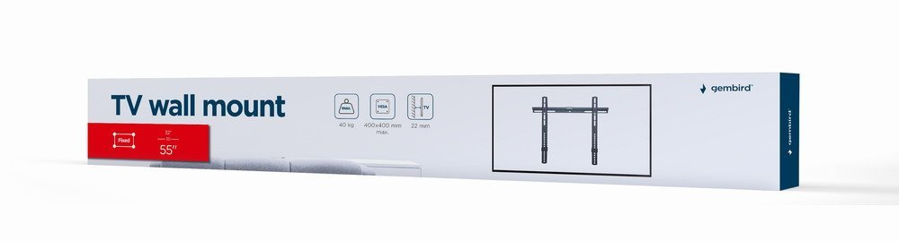 Pevný nástěnný držák pro LCD televizory Podporuje většinu LCD televizorů s úhlopříčkou 32” - 55” Kompatibilní s VESA, max. 400 mm x 400 mm Vzdálenost od zdi: 22 mm Praktická integrovaná vodováha pro dokonalé vyrovnání Součástí balení je veškerý potřebný montážní materiál Specifikace Materiál: Ocel Povrchová úprava: práškový lak Barva: černá Vhodná pro velikost obrazovky: 32" - 55" Kompatibilní s VESA: 200 x 200, 300 x 300, 400 x 200, 400 x 400 mm Nosnost: 40 kg Profil: 22 mm Rozsah náklonu: Není k dispozici Rozsah otáčení: Není k dispozici Úroveň obrazovky: Není k dispozici Instalace: pevná stěna, dvojitý trám (406 mm) Správa kabelů: Ne Čistá hmotnost: 0,88 kg Rozměry: 22 x 443 x 431 mm