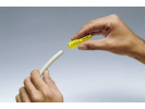 • Používá Rhino štítky opatřenými průmyslovým lepidlem, které jsou k dispozici v provedení s pěti různými materiály