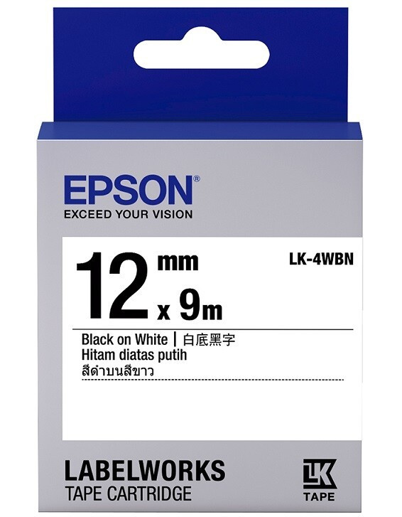 Epson LabelWorks LK-4WBN C53S654021 12mm x 9m, černý tisk / bílý podklad, originální páska lze použít v těchto tiskárnách