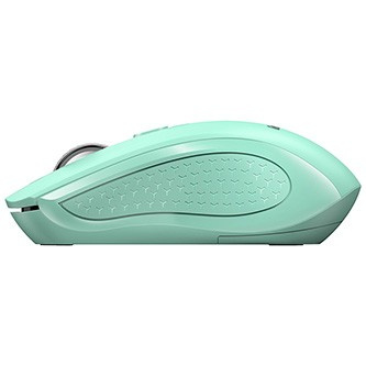 Ergonomický design s mírně zakřivenými boky poskytuje pohodlnou oporu pro palec i prsty při držení. Myš je vhodná pro praváky i leváky a její bezdrátové připojení s dosahem až 10 metrů zajišťuje volnost pohybu bez omezení kabelem.