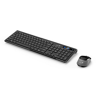 Bezdrátový set klávesnice a myši GENIUS Slimstar 8230 zvládne všechny každodenní úkoly ve firemní kanceláři nebo na home-office. Klávesnice podpoří rychlé a komfortní psaní i velmi náročných a dlouhých dokumentů. Za zmínku stojí také přítomnost multimediální kláves pro základní kontrolu hlasitosti zvuku nebo pozastavení přehrávání. Bezdrátová klávesnice Genius rovněž disponuje numerickým blokem pro zadávání číselných znaků. Bezdrátová myš Genius je vybavena optickým senzorem s rozlišením 1200 DPI, které umožňuje hladký a plynulý pohyb po pracovní ploše a tím přesné ovládání kurzoru. Bezdrátové připojení je realizováno skrze USB adaptér s 2,4GHz rozhraním a Bluetooth a umožní vám činnost až na třech zařízeních současně.