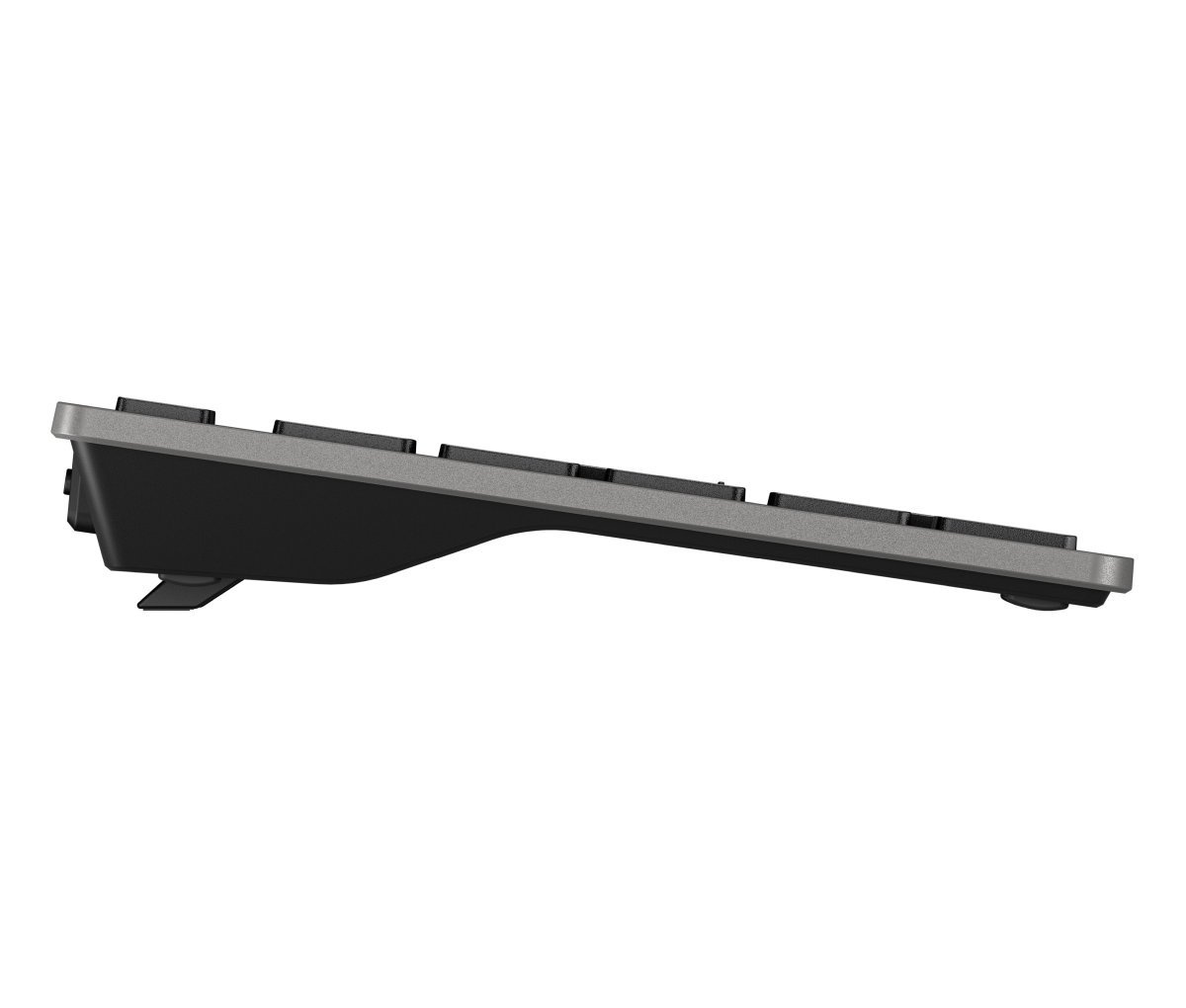 Možnost připojení přes USB přijímač a Bluetooth Dobíjecí baterie s výdrží až 2 měsíce a rychlím nabíjením i během práce (3 minuty, USB-C kabel). V horní liště jsou primární funkční klávesy F1 až F12. Multifunkční klávesy jsou k dispozici po stisknutí klávesy Fn. Díky možnosti připojení až ke třem zařízením je tato klávesnice ideální pro ty, kteří pracují na více platformách.