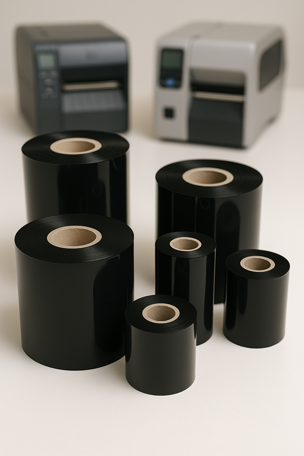 TTR fólie by měla být alespoň o 2 mm širší než etiketa na každé straně. Např. samolepicí etiketa má 100 mm → TTR fólie by měla mít min. 104 mm.
