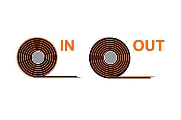 Každá tiskárna vyžaduje správný směr návinu – buď OUT (ink side out), nebo IN (ink side in).
