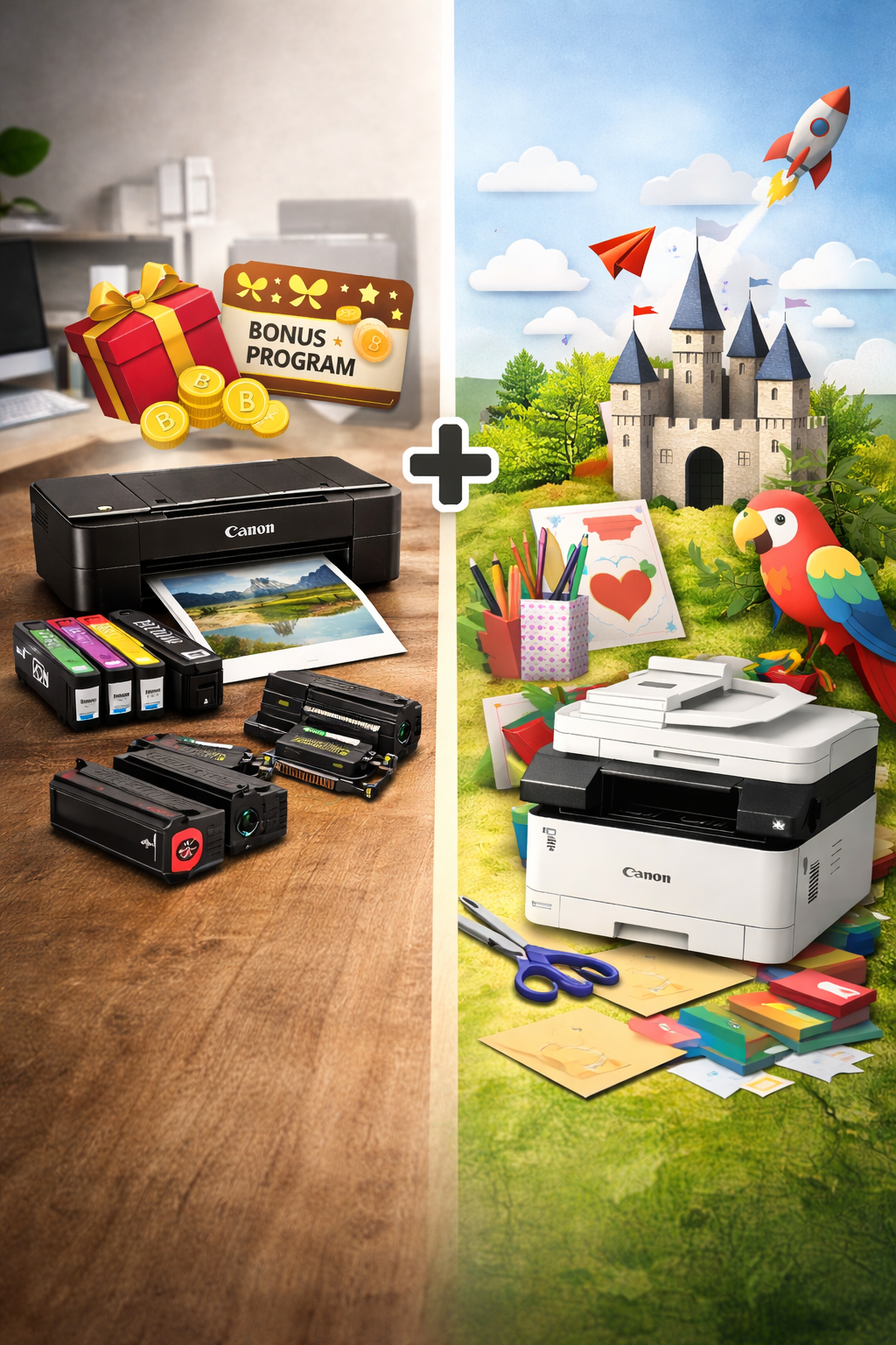 Pokud chcete ze své tiskárny Canon nebo multifunkce Canon vytěžit maximum, vyplatí se dodržovat několik základních zásad. Především používejte originální inkoustové cartridge Canon a tonery Canon , zapojte se do Canon BonusProgramu a pravidelně sledujte nové projekty v Creative Parku.