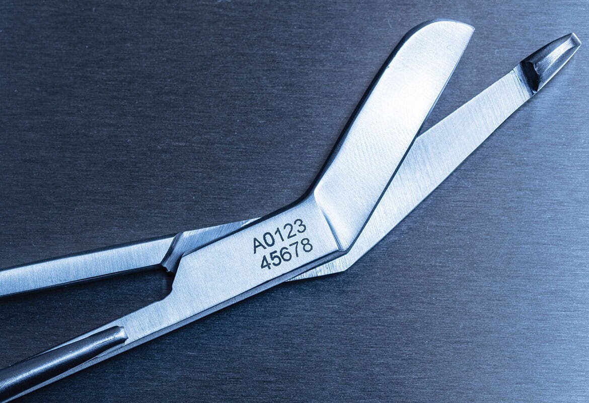 Výsledkem je trvalý text nebo čárový kód přímo v kovu, bez mechanického poškození materiálu.