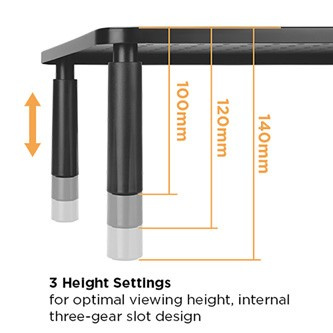 Powerton ERGO BUCO podstavec nabízí možnost výškového nastavení ve třech úrovních 10 / 12 / 14 cm, aby vyhovoval potřebám opravdu každého uživatele. Nepřetěžujte svou krční páteř a šíjové svaly, pozvedněte svůj monitor do správné výšky.
