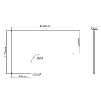 Typ: Rohová stolní deska s ergonomickým výřezem