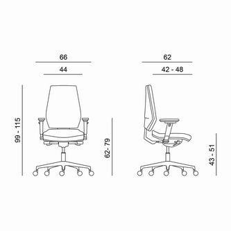 Nastavení výšky sedáku je důležité pro správnou ergonomii a pohodlné sezení. Je nutné, aby se minimalizovalo napětí v dolní části zad a v nohách a tím se zvýšila produktivita a pohodlí během práce. Správná výška sedáku by měla umožnit, aby Vaše nohy byly pevně na zemi a Vaše kolena byla v pravém úhlu. Nastavení výšky v rozmezí 8 cm umožňuje plynový píst židle, přičemž výšku můžete zaaretovat v libovolné pozici.