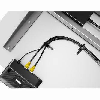 Aby se Vám nepotřebné kabely nemotaly pod nohy, můžete je svázat k desce stolu pomocí jednoduchého kabelového managementu, který je součástí balení.