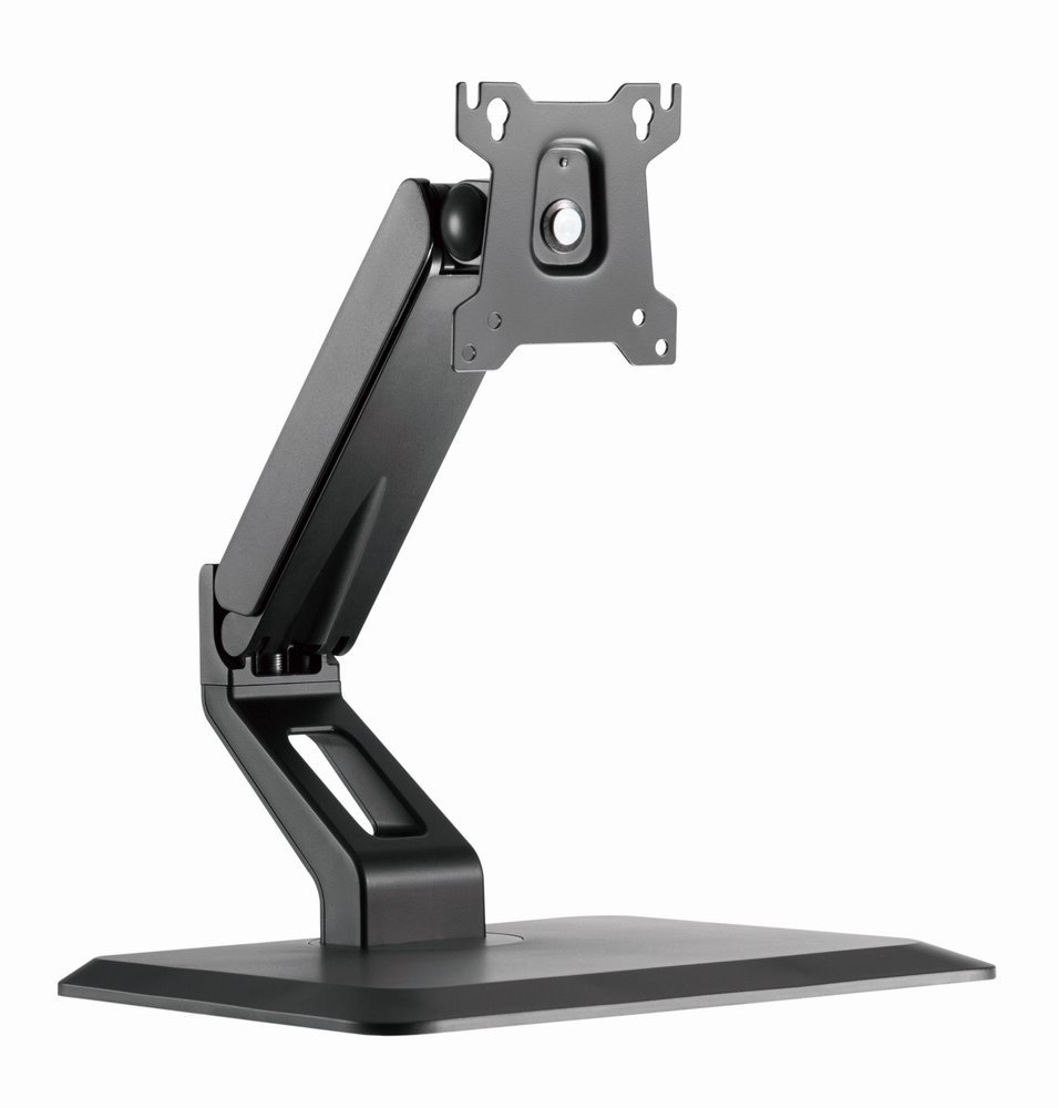 Výškově nastavitelný stolní stojan pro monitor Snadné plynulé nastavení výšek v rozmezí 75 - 325 mm Otočná základna a volně naklápěcí konstrukce umožňuje snadné nastavení obrazovky pro lepší pozorovací úhly a snížení oslnění Funguje téměř s každým monitorem LCD (max. 32“ / 10 kg) Stabilní základová deska pro bezpečné umístění na jakýkoli stůl Vestavěné vedení kabelů pro organizovaný a přehledný pracovní prostor Kompatibilní se standardem VESA: Max. 100 x 100 mm Specifikace Materiál: hliník, ocel, plast Povrchová úprava: práškový lak Barva: Matná černá Podporovaná velikost obrazovky: 17" - 32" Nosnost: 2 ~ 10 kg Kompatibilní s VESA: 75 x 75, 100 x 100 mm Nastavení výšky: 265 ~ 415 mm Rozsah náklonu: +90 ° ~ -90 ° Rozsah otáčení: +40 ° ~ -40 ° Rotace obrazovky: +180 ° ~ -180 ° Čistá hmotnost: 3,96 kg Rozměry: 325 x 306 x 382 mm