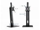 Výškově nastavitelný stolní stojan na monitor Snadné plynulé nastavení výšky mezi 265 - 415 mm Umožňuje otáčení a naklápění displeje a otáčení displeje z režimu na šířku do režimu na výšku Funguje s téměř jakýmkoli LCD monitorem (max. 32" / 7 kg) Stabilní základní deska pro bezpečné umístění na jakémkoli stole Vestavěná správa kabelů pro organizovaný a úhledný pracovní prostor Kompatibilní s VESA (100 x 100 mm a 75 x 75 mm) Specifikace Materiál: hliník, ocel, plast Povrchová úprava: práškový nástřik Barva: černá Vhodná pro velikost obrazovky: 17" - 32" Nosnost: 2 ~ 7 kg Kompatibilní s VESA: 75 x 75, 100 x 100 mm Nastavení výšky: 265 ~ 415 mm Rozsah náklonu: +15 ° ~ -15 ° Rozsah otáčení: +40 ° ~ -40 ° Rotace obrazovky: +180 ° ~ -180 ° Čistá hmotnost: 2,96 kg Rozměry: 240 x 200 x 570 mm