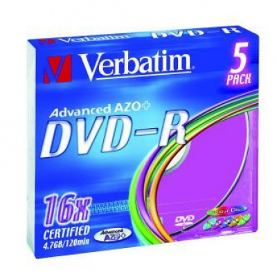 Verbatim DVD-R, Colour, 43557, 4.7GB, 16x, slim box, 5-pack, bez možnosti potisku, 12cm, pro archivaci dat